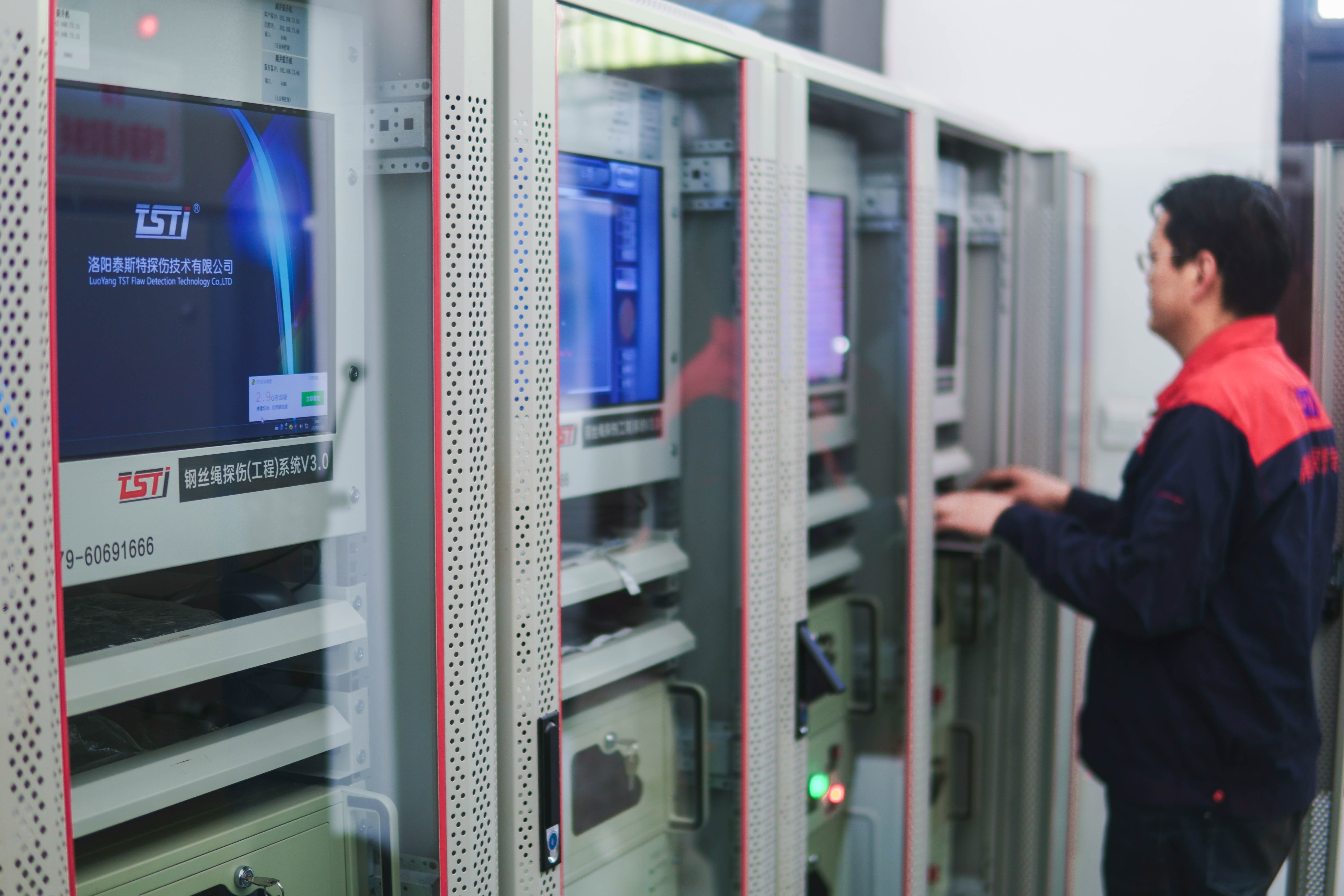 洛阳泰斯特探伤技术有限公司凭借“全磁检测”核心技术,也将积极响应国家矿山安监局工作的开展,我们所研制的智能型探伤工程自动化装置可适用于智慧矿山中的单绳缠绕式提升机、四/六绳井塔式提升机、四/六绳斜井式提升机、乘人架空装置等不同系统中,可以对钢丝绳内外部的断丝、磨损、锈蚀等各种隐蔽性损伤进行24小时不间断的监测及实时预警,并给出探测数据和损伤数值,并且能够做出安全状况评价,工作人员可根据所探测出的结果来判断是否需要更换钢丝绳。