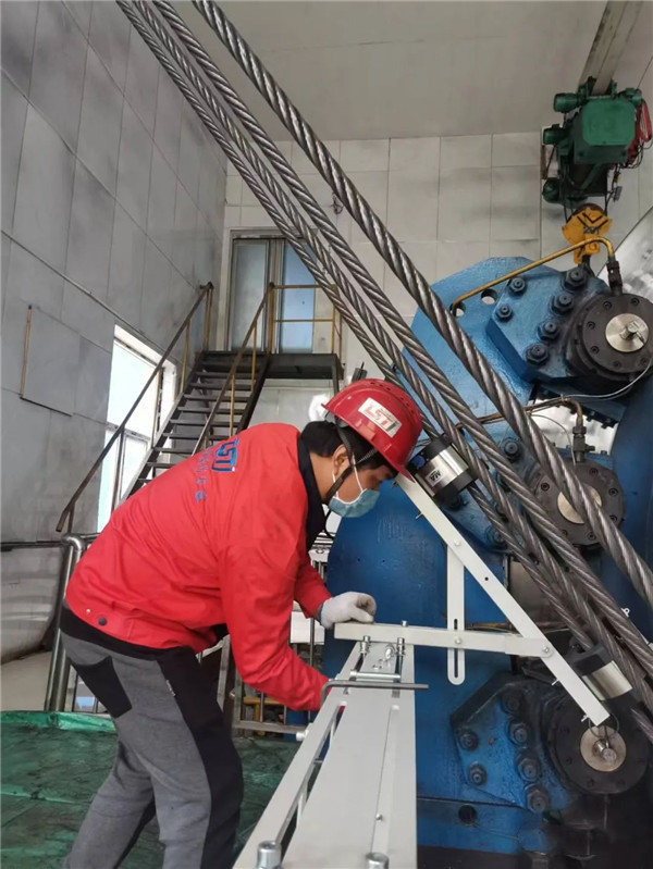 山东的安装现场,工程师胡同辉、翟硕飞马不停蹄的在淄博市、阜山市和招远市奔波,相继安装了3套四绳提升机钢丝绳在线监测系统,现场与客户进行技术交流,并做培训3场。