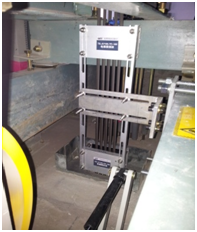 根据现场工况条件,经充分技术评估曳引轮部位上安装套探伤前置装置来检测钢丝绳;对钢丝绳实施非接触式在线实时探测,不影响钢丝绳自身的正常生产运行;整体结构设计为随动形式,工作过程中可跟随钢丝绳排绳运动和钢丝绳的抖动、跳动;整体可旋转,在设备检修期间(如钢丝绳换绳、夹持轮维护)可将前置探伤装置旋离钢丝绳,检修完毕后重新上线检测。